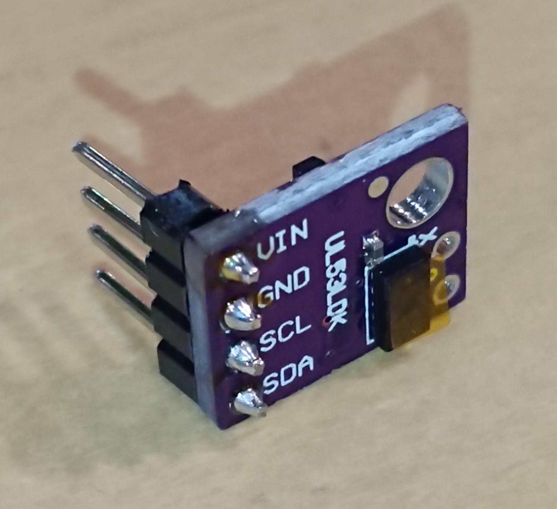 センサの前面 (VIN、GND、SCL、SDA等の文字が書いてある方) に手を近づけたり離したりしてみてください。距離の値が変化するはずです。