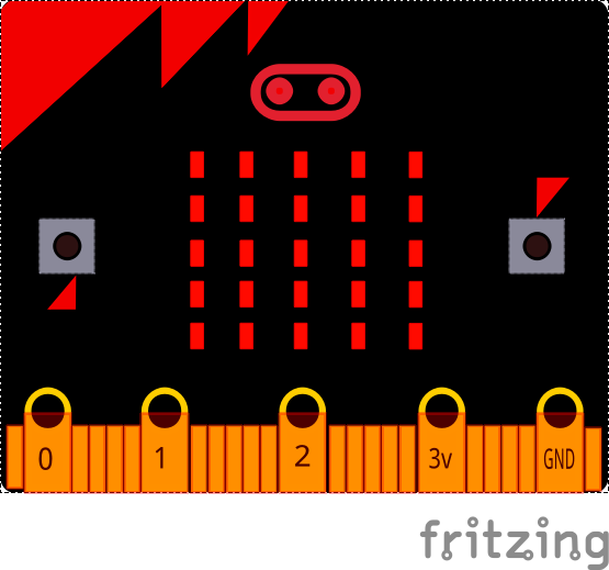 ボタンを押すと相手のmicro:bitにアイコンが表示されます。Aボタン:□, Bボタン:v